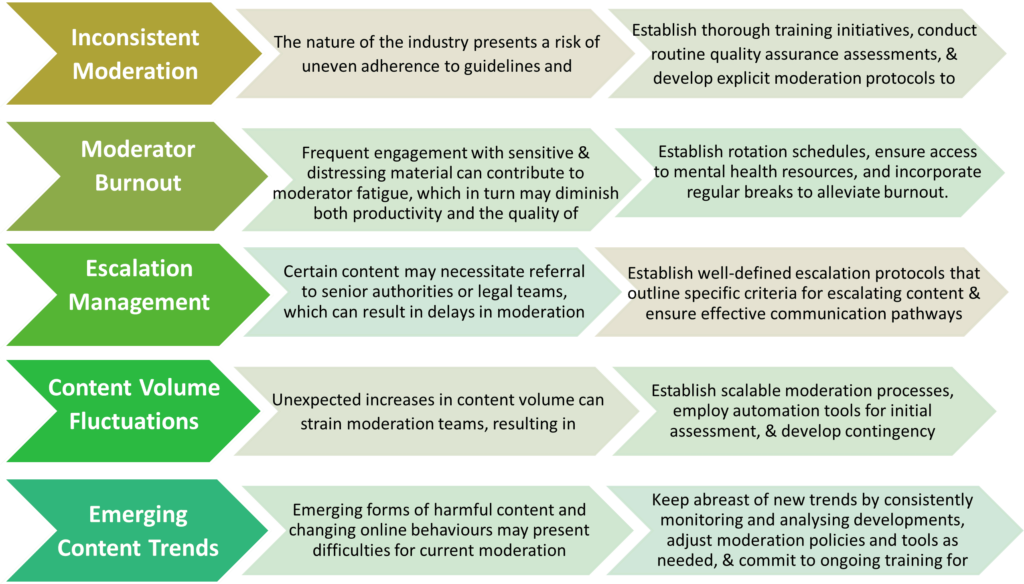 - Safety and Security: Content moderation is essential in safeguarding users from harmful and inappropriate materials, including hate speech, harassment, graphic violence, and explicit content.